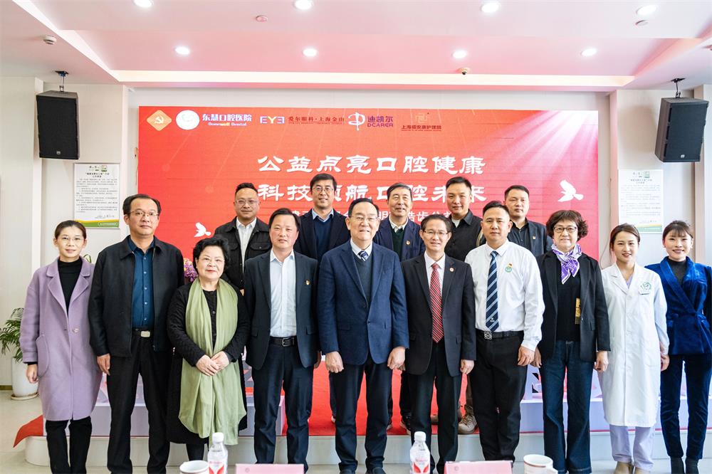 Yan Dongfang, President of Shanghai Association of Social Medical Institutions, Zhong Juhua, Vice President of Shanghai Social Medical Association, Zheng Jiawei, Deputy Secretary of the Party Committee of Shanghai Jiao Tong University School of Stomatology, Tan Junfeng, Director of Jinshan District Party Service Center, Gao Shuhui, Director of Party and Mass Service Center of Zhujing Town, Jinshan District, Wu Huifang, President of Shanghai Aierjingliang Eye Hospital, Chen Youjun, Secretary of the Party Branch of Shanghai Fu'ankang Nursing Home, Meng Chunxiao, Deputy General Manager of Shanghai Fu'ankang Nursing Home, Zhang Huidong, Chairman of Shanghai Donghui Medical Group, Zhang Qiqi, President of Shanghai Donghui Dental Hospital, Lu Zhengwei, Secretary of the Party Branch of Shanghai Donghui Stomatological Hospital, Chen Yun, General Manager of Dekaier, Qiu Chunshan, Regional Manager of Dikaier, and other leaders attended the event.