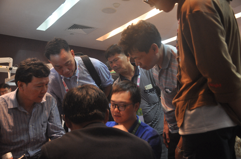 現(xiàn)場氣氛熱烈非凡,大家有序等候體驗(yàn)試用迪凱爾數(shù)字化口腔種植手術(shù)導(dǎo)航系統(tǒng),感受科技革新,積極討論與交流,眾多參會者為了不錯(cuò)過演示的細(xì)節(jié)紛紛站立“圍觀”。