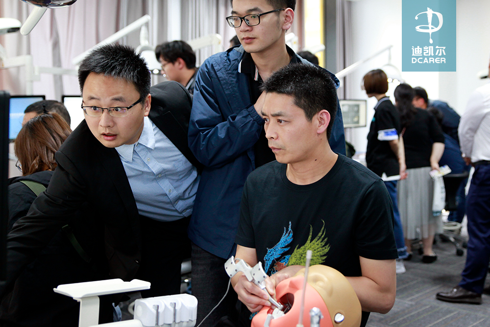 迪凱爾易植美項(xiàng)目組精心準(zhǔn)備了前牙單顆模型,后牙單顆模型,后牙多顆模型,無(wú)牙頜手術(shù)模型等,還原多種適應(yīng)癥應(yīng)用場(chǎng)景,為來(lái)賓展示了數(shù)字化導(dǎo)航系統(tǒng)強(qiáng)大功能;來(lái)賓還體驗(yàn)了迪凱爾另一款教學(xué)產(chǎn)品——口腔技能訓(xùn)練及實(shí)時(shí)評(píng)估系統(tǒng)的口腔修復(fù)學(xué)及牙齒種植教學(xué)課程,體驗(yàn)過(guò)程中,迪凱爾易植美專業(yè)團(tuán)隊(duì)針對(duì)來(lái)賓的各種問(wèn)題進(jìn)行了詳細(xì)的解答。