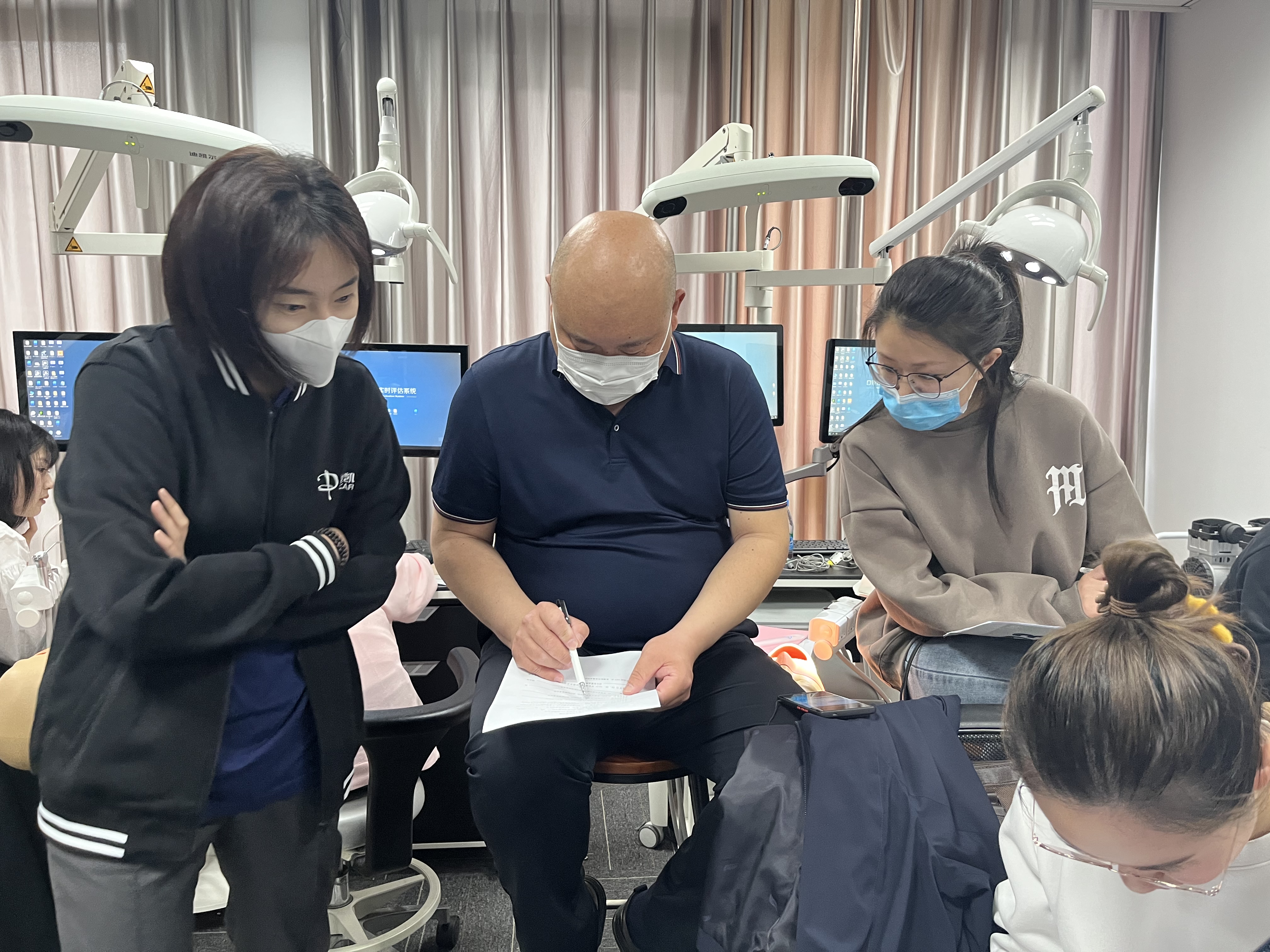 在培訓的過程中,對各診所的導航小助手進行現(xiàn)場考核,分為應(yīng)試和實操,在實操過程中,還有速度的大比拼,不僅僅是考核小助手的專業(yè)知識、操作能力,更是團隊之間的配合。